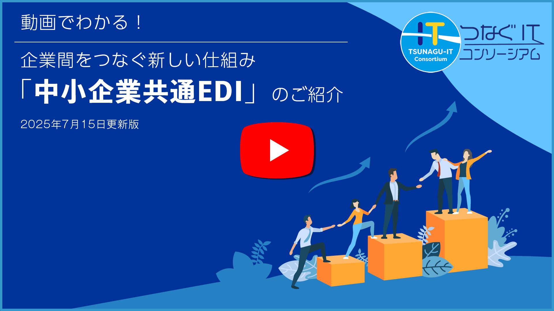 中小企業共通EDIは、中小企業取引に最適化・標準化された、簡単・便利・低コストを目指した取引データの企業間交換の仕組み(EDI)です。